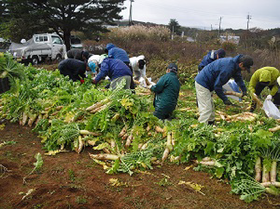 薬莱山麓の耕作放棄地に大根を栽培し耕作放棄地を解消させる活動です。