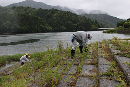国営道前道後平野土地改良事業で造成した面河ダムは、道前道後平野の農業用水の水源となっています。この水源地域の環境整備をお手伝いするため、 面河ダム公園周辺の清掃を行う活動へ参加いたしました。